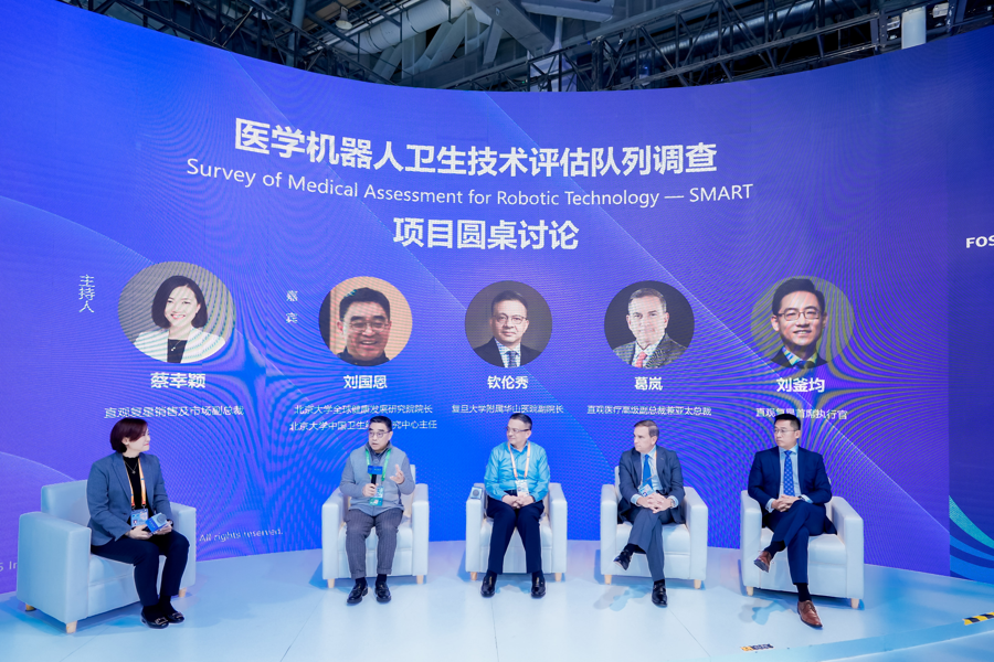 在精准医疗“价值可及”进程中,直观复星依托代表性技术平台,持续支持本土化卫生经济学研究,为建立符合中国医疗实际的价值评估体系提供支撑。展会期间,“医学机器人卫生技术评估队列调查“(SMART)项目举办圆桌讨论。该2023年由北京大学全球健康发展研究院与中国医学装备协会发起的项目,已覆盖全国7大区域、17个核心研究中心,为医学机器人技术应用与普及奠定关键基础。